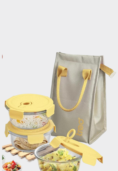 GLASS LUNCH BOX SET WITH INSULATED CARRY BAG