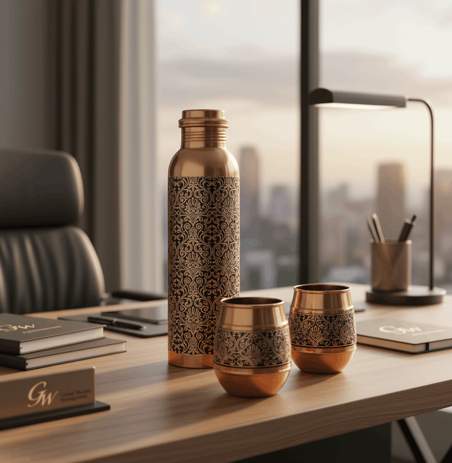 ELEGANT COPPER BOTTLE & TUMBLER SET