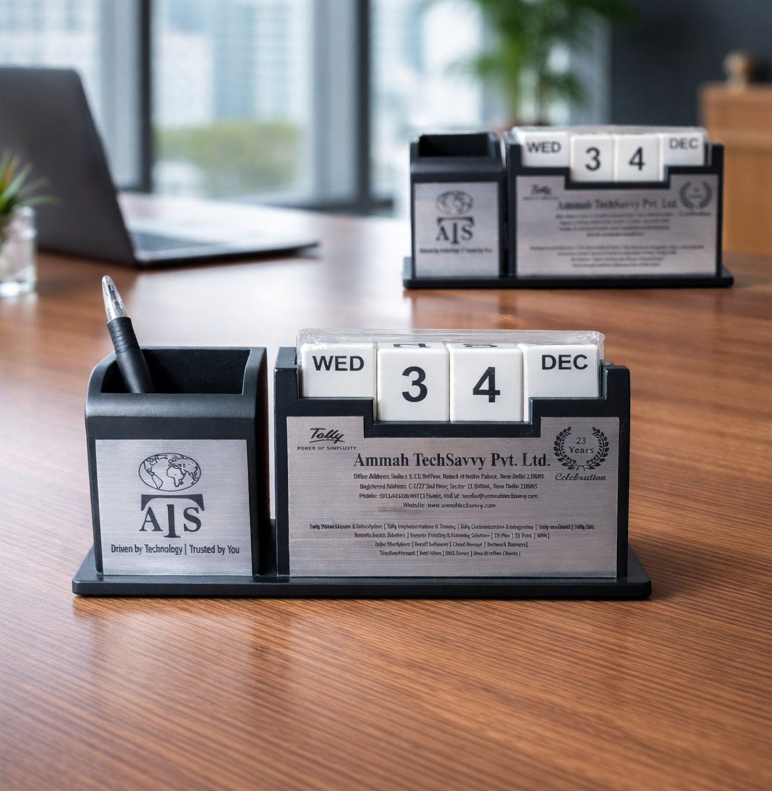 The modern and minimal design enhances your workspace while showcasing a refined corporate style.