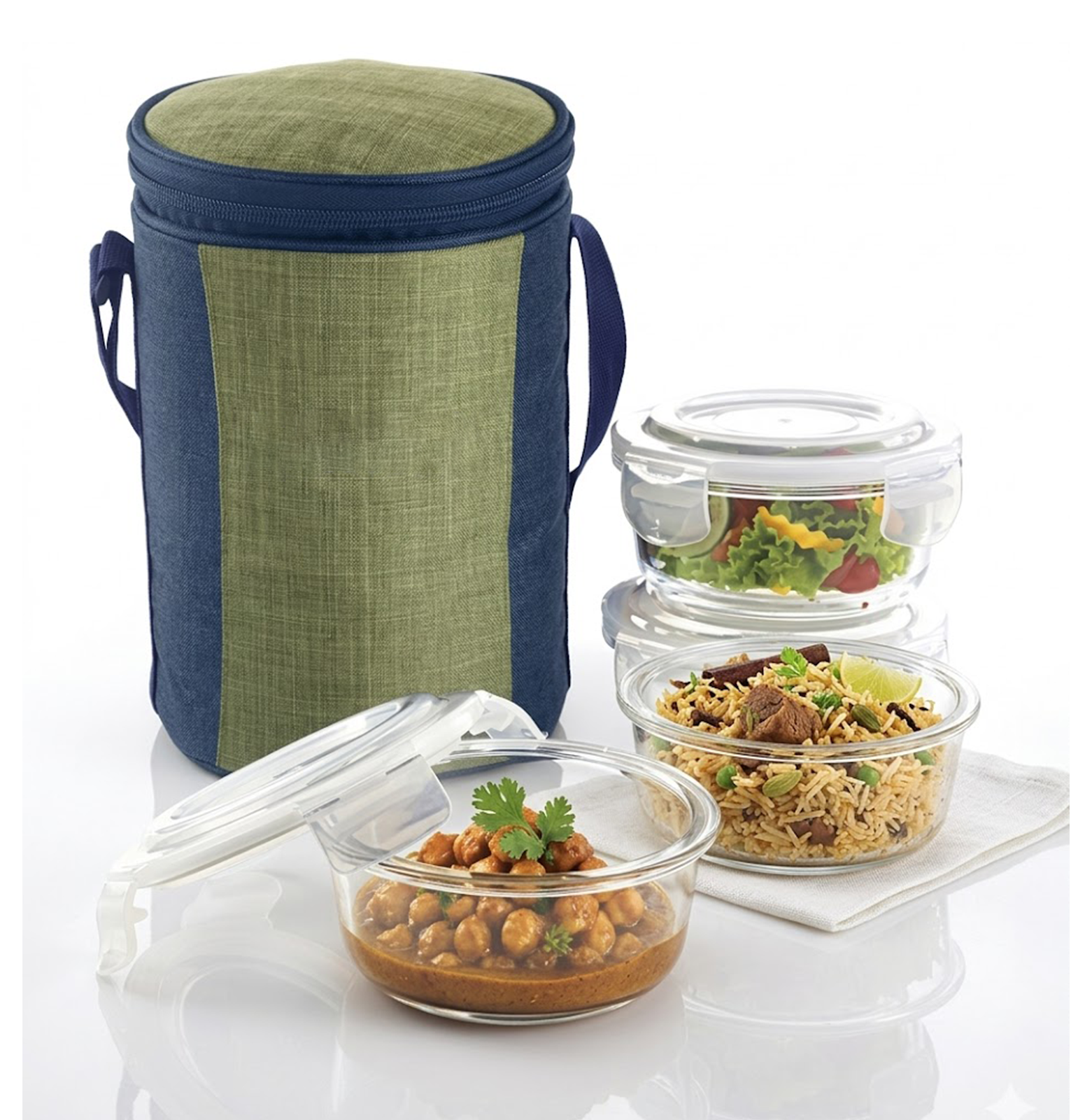 GLASS LUNCH BOX SET WITH INSULATED CARRY BAG